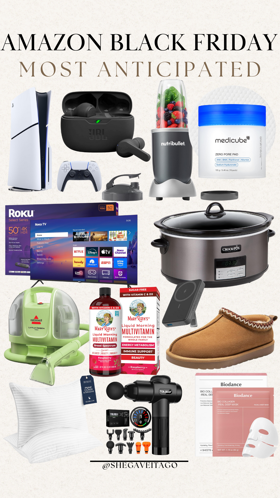 PlayStation | JBL | NutriBullet | Medicube| Roku TV | Crockpot | Little Green Cleaner | Portable Charger | Multivitamin | Slippers | Pillows | Massage Gun| Biodance