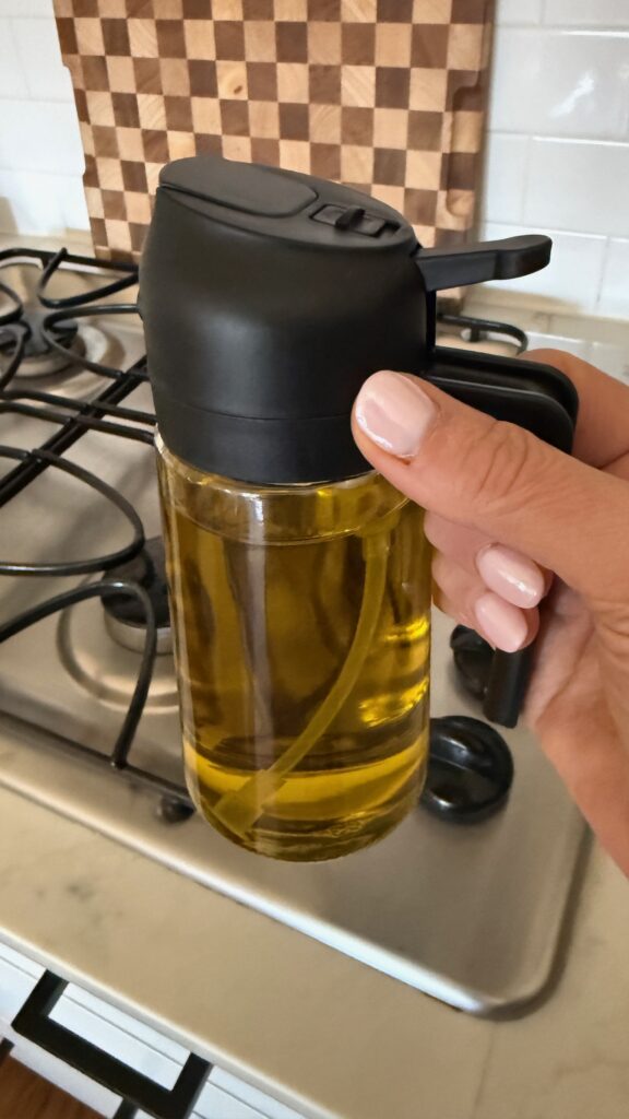 This has simplified cooking so much. Instead of multiple bottles sitting out, this one does both spraying and pouring.