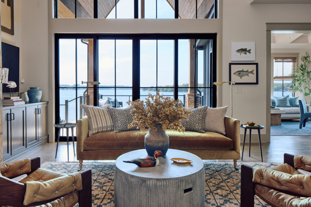 Flowing naturally into the kitchen with neutral colors, mixed materials, and smart storage make these spaces feel joyful yet practical; perfect for slow mornings or entertaining friends and family after a day on the lake.