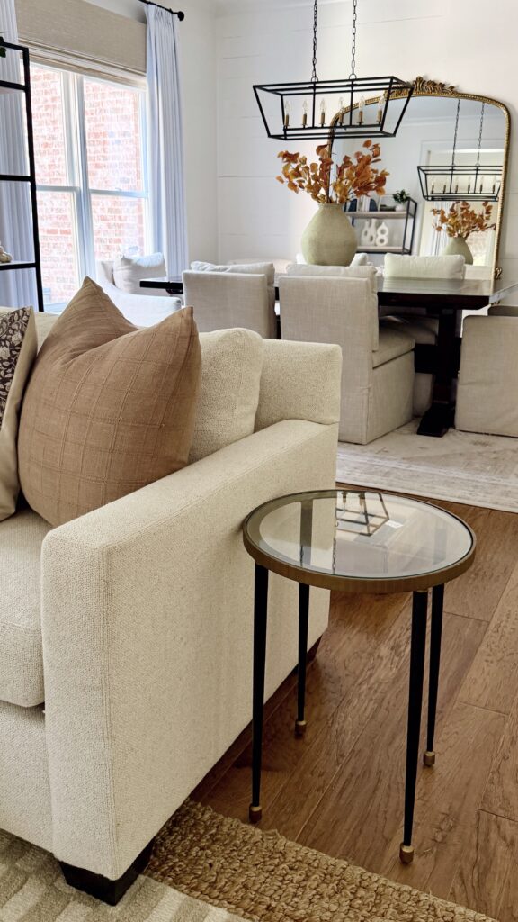Lighting sets the mood in any room, and fall is the perfect time to bring in warm, ambient pieces. A mix of floor lamps, table lamps, and natural light creates a cozy glow that makes the space feel inviting from day to night.